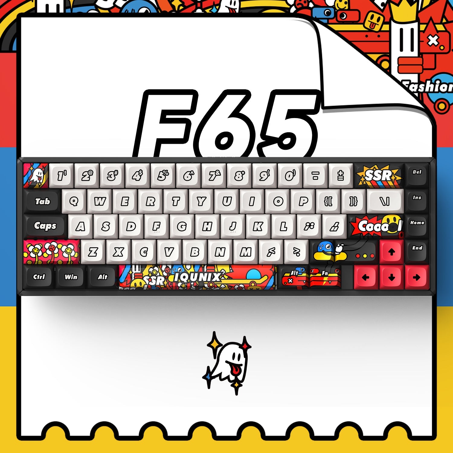 The F65 Graffiti Diary keyboard is perfect for tight desk spaces with a smaller size and compact 65% layout. What's more, it emphasizes ergonomic design, forming an angle of 6° with the desktop, matching the curvature of the keycaps and the arcs of human hands, which can reduce wrist strain and fatigue and provide a more comfortable typing experience.