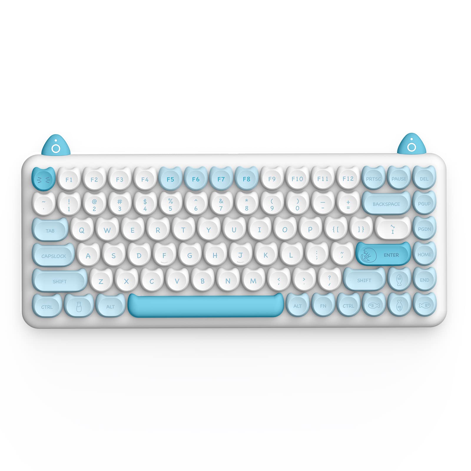 Cute Concaved Keycaps and silicone kitten ears offer joyful tapping and relief from your work stress. Adorable Legends also add vitality and dynamic.