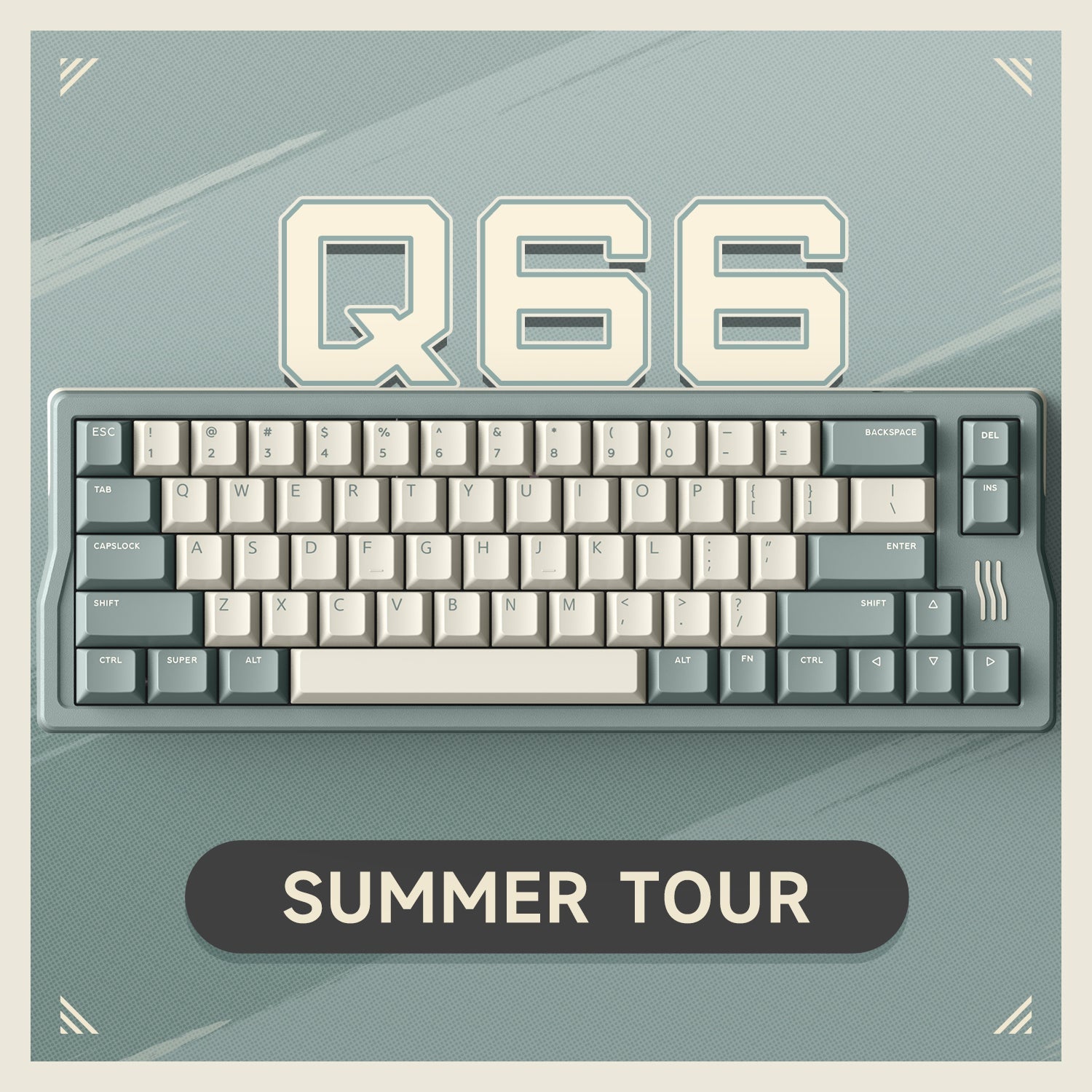 The Q66 IQUNIX Summer Tour is a compact mechanical keyboard with tri-mode connectivity, high-quality PBT keycaps, mechanical switches, and a boutique design. It mixes a muted cyan and beige color scheme, is filled with enthusiast features, and with a gasket-based mounting structure that enhances both the sound and feel of the keyboard.