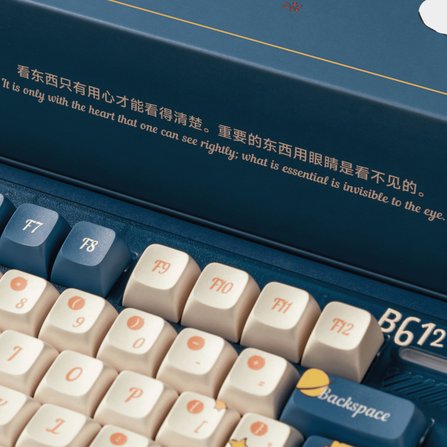 The keyboard's gift box, resembling a treasure chest, encapsulates "The Little Prince" essence. Illustrated with the little prince and the fox, its detailed sides and pages read like heartwarming chapters, making it an ideal, emotionally charged gift for friends, family, or loved ones.